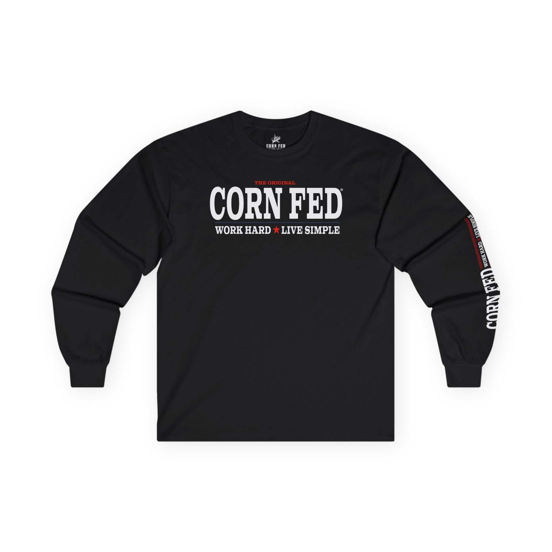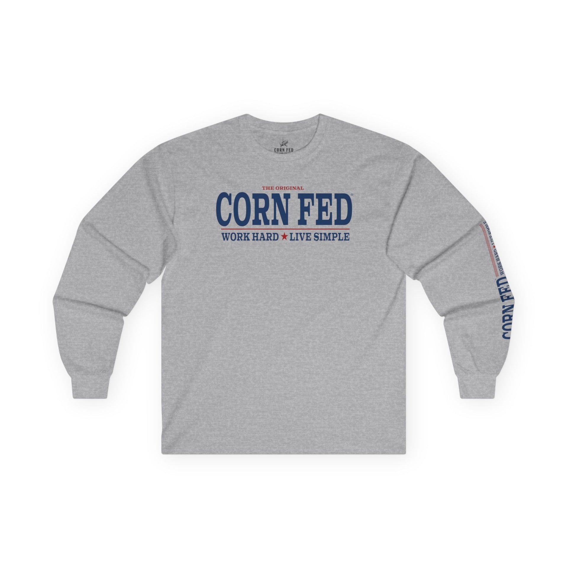 A classic Americana tee. Perfect for those who love their country and the MidWest farming lifestyle. Work Hard Live Simple.